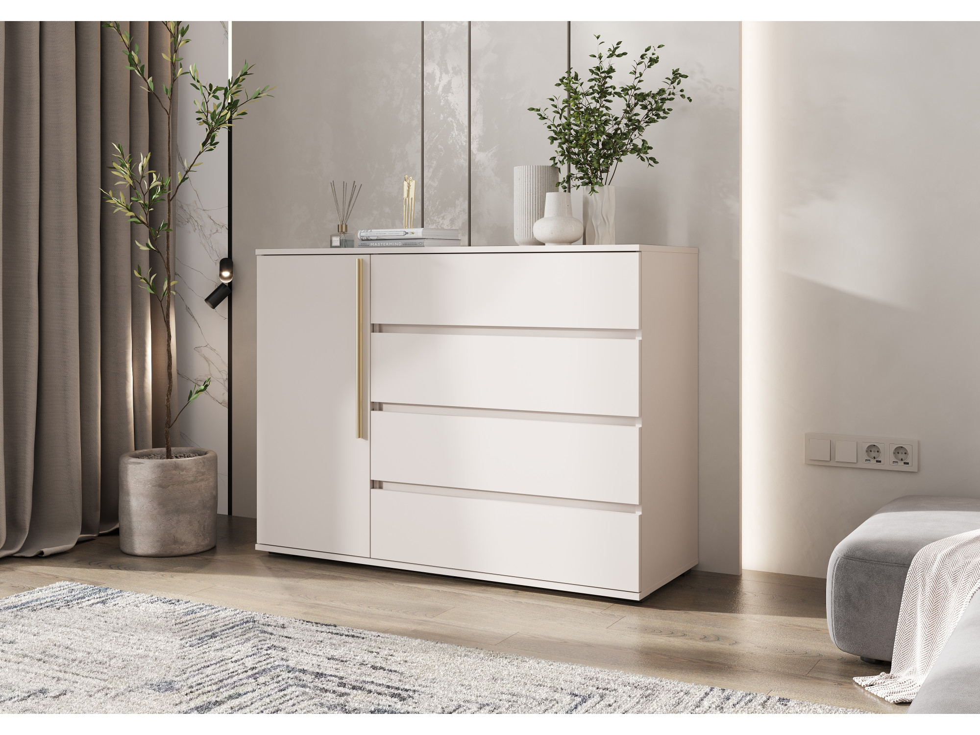 Отзывы о Столплит Комод Норд 1 дверь/4 ящика 1200, матовый Кашемир