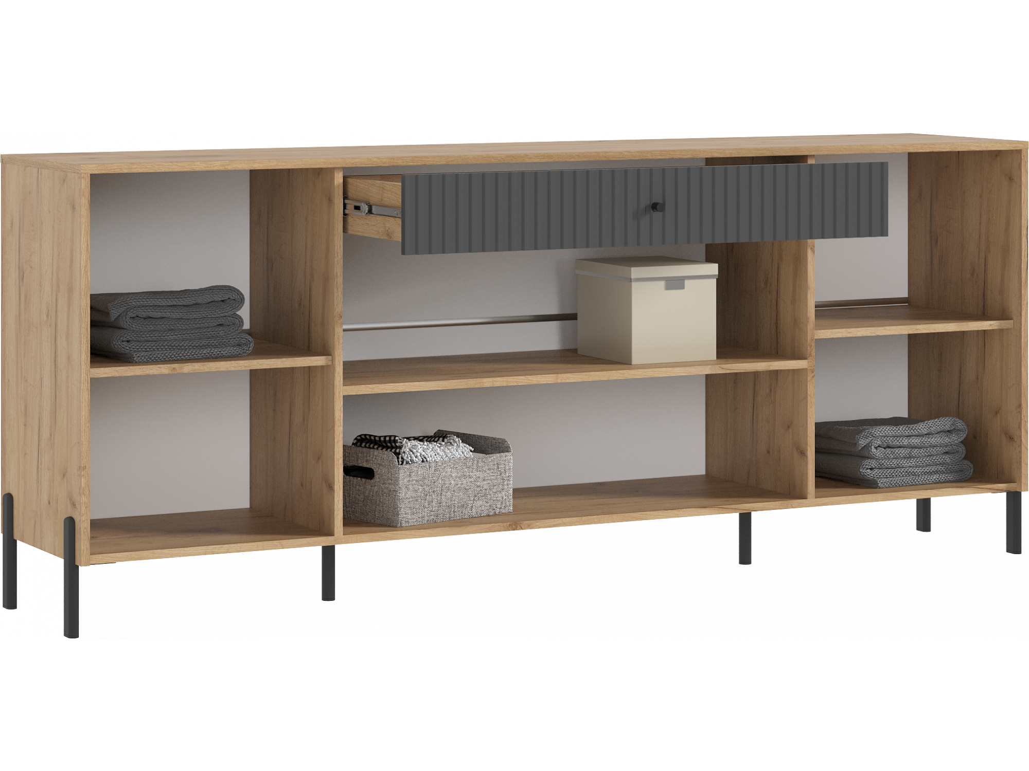 Элегантный и функциональный комод, созданный для тех, кто ценит стиль и удобство. Четыре вместительные двери скрывают три просторные полки, обеспечивая достаточно места для хранения любых вещей — от посуды до текстиля. Верхний ящик идеально подходит для мелочей, которые всегда должны быть под рукой. Современный дизайн с акцентом на лаконичность и продуманные детали делают этот комод универсальным решением для любого интерьера.