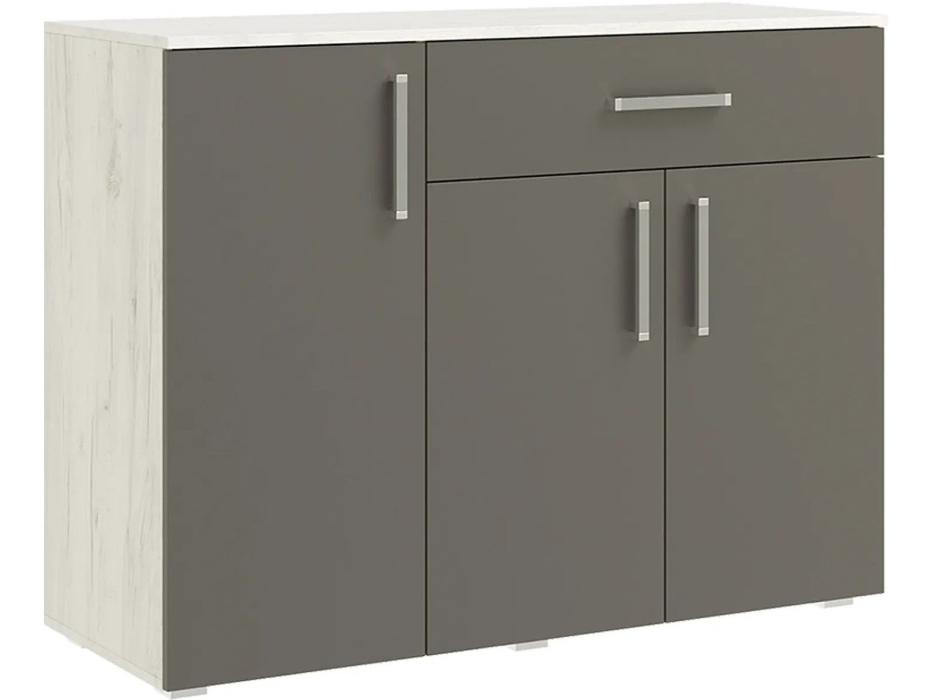 Фиеста NEW Комод 1 ящ 3 двери — широкий комод с большим выдвижным ящиком и 2 отделениями за распашными дверьми. Материал комода ЛДСП.