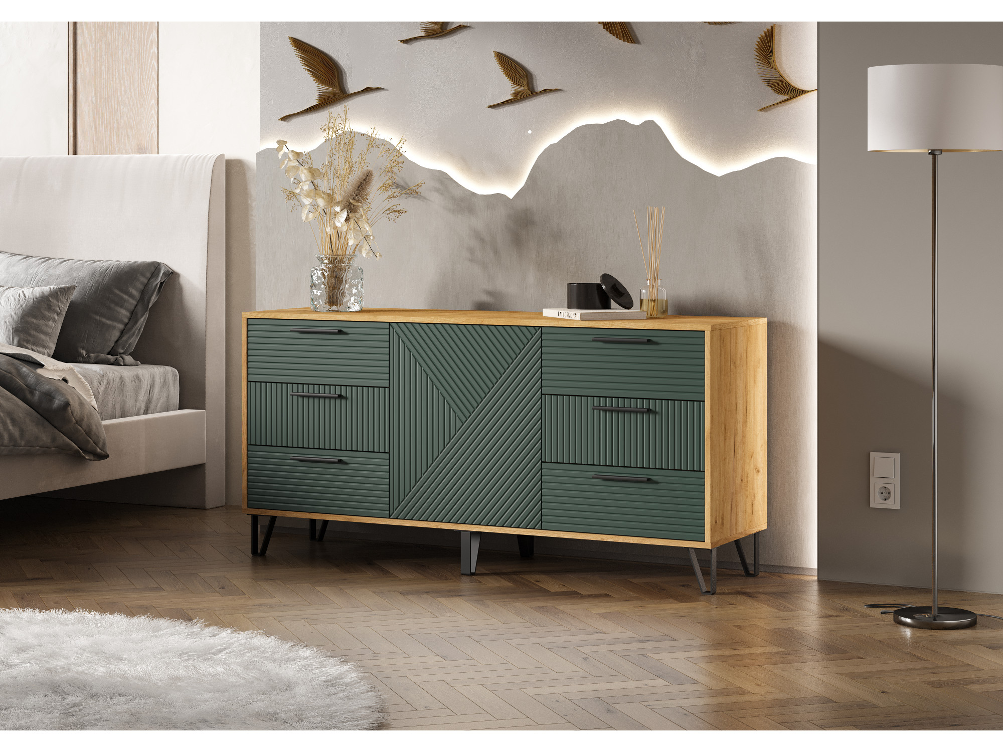 Комод Флэш 1500 (Крафт/Браш Мени Грин)