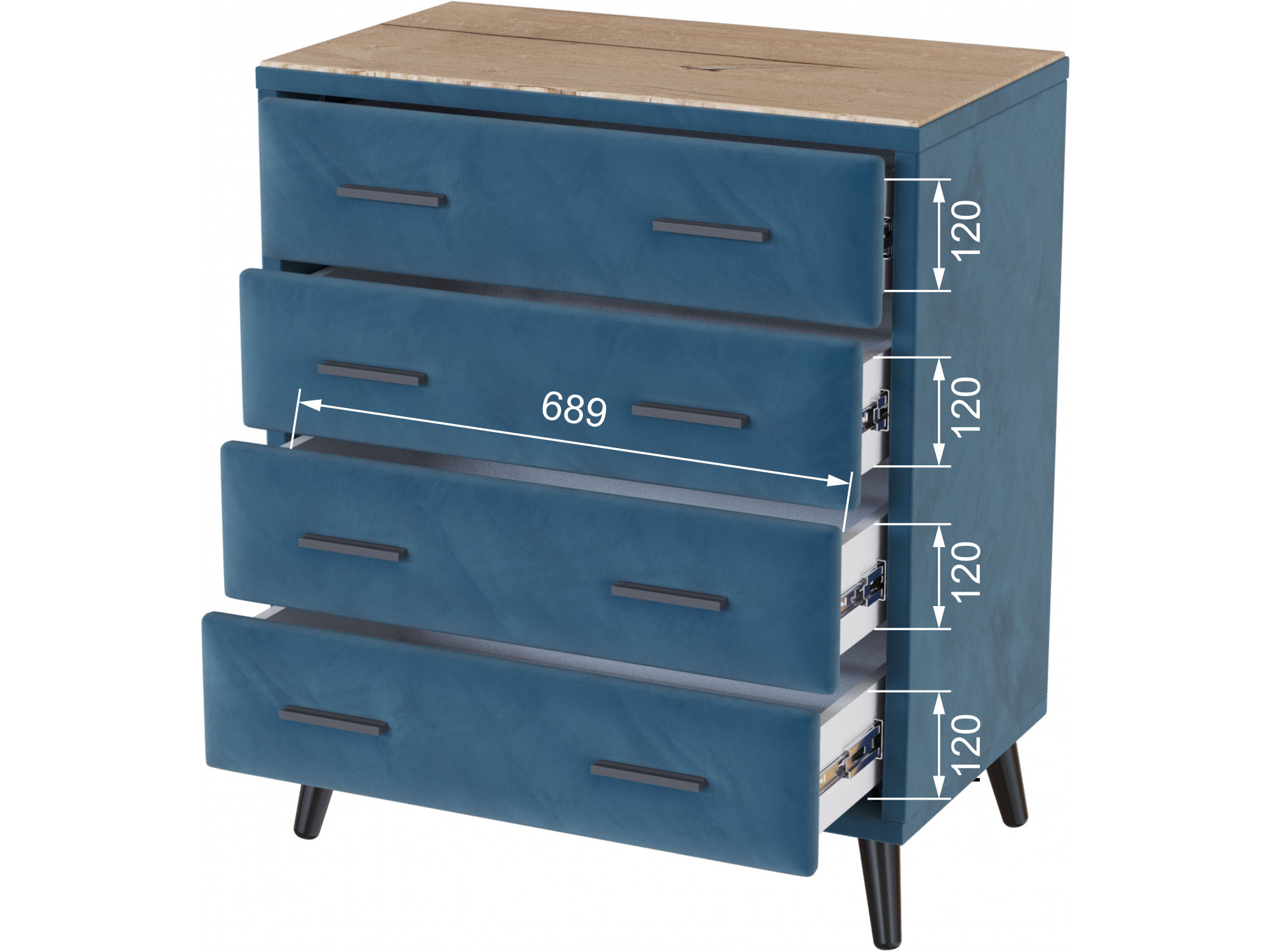 Механизм выдвижения: Шариковые направляющие полного выдвижения с элегантными металлическими ручками.