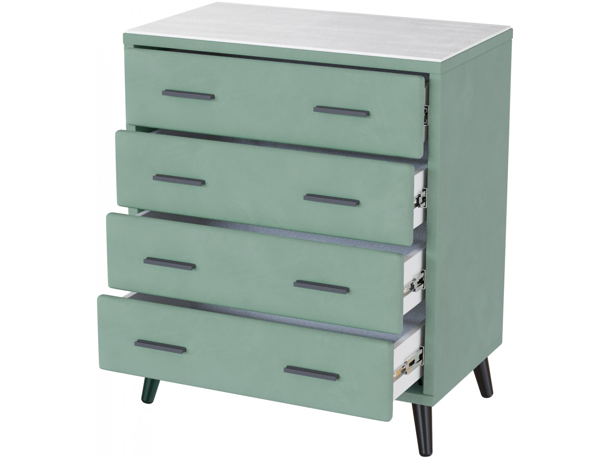 Механизм выдвижения: Шариковые направляющие полного выдвижения с элегантными металлическими ручками.