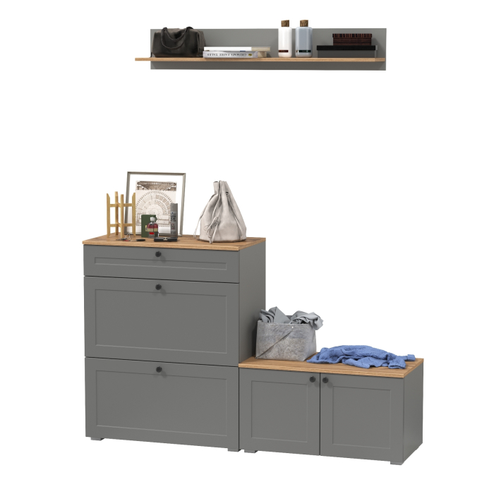 Остин обувница с тумбой с дверками и верхней полкой – современное решение для прихожей, сочетающее стиль, практичность и функциональность.