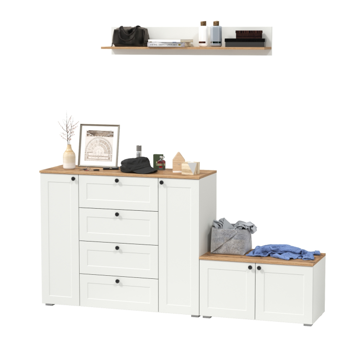 Прихожая 67 состоит из тумбы с дверками Остин 13.257, комода Остин 16.221 и открытой настенной полки Остин 16.484.