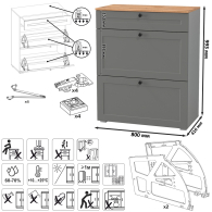 В комплектации 2 тумбы для обуви Остин 16.121. Каждая Тумба с выдвижным ящиком для мелочей сверху и 2 откидными дверками с полками для 12 пар обуви снизу. Всего - 24 пары обуви. Каждая откидная дверь расчитана для хранения и размещения 6 пар невысокой обуви. Максимальная нагрузка на каждую полку и ящик - 3 кг.