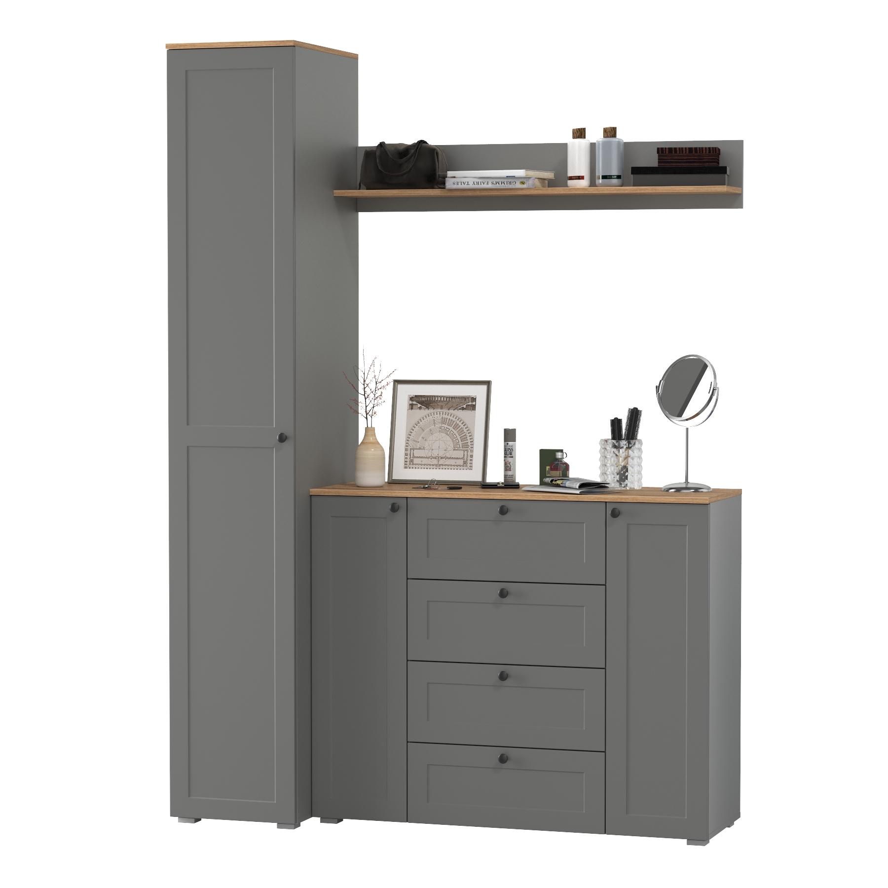Отзывы о Столплит Шкаф-пенал с полками и вешалкой для верхней одежды с комодом и полкой Остин Графит софт/дуб ирландский