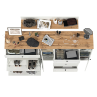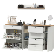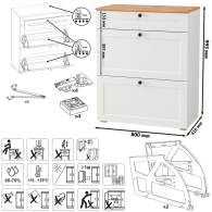 Тумба с выдвижным ящиком для мелочей сверху и 2 откидными дверками с полками для обуви снизу. Каждая откидная дверь расчитана для хранения и размещения 6 пар невысокой обуви. Максимальная нагрузка на каждую полку и ящик - 3 кг. Скрытые направляющие выдвижного ящика с доводчиками предназначены для обеспечения мягкого и плавного закрывания.