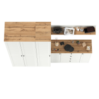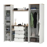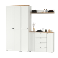 Прихожая 75 состоит из узкого шкафа-пенала Остин 13.225, шкафа Остин 13.224 с 2 распашными дверьми, комода Остин 16.221 и открытой настенной полки Остин 16.484.