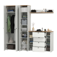 Шкаф и шкаф-пенал с комодом и полкой Остин для прихожей – современное решение для прихожей, сочетающее стиль, практичность и функциональность.