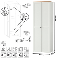 Шкаф с 2 распашными дверьми. В его верхней части устроена антресольная полка, предназначенная для головных уборов. Под ней горизонтальная штанга. Полка и ниша внизу добавляют дополнительное пространство для аксессуаров или других вещей. Максимальная нагрузка на каждую полку - 5 кг.