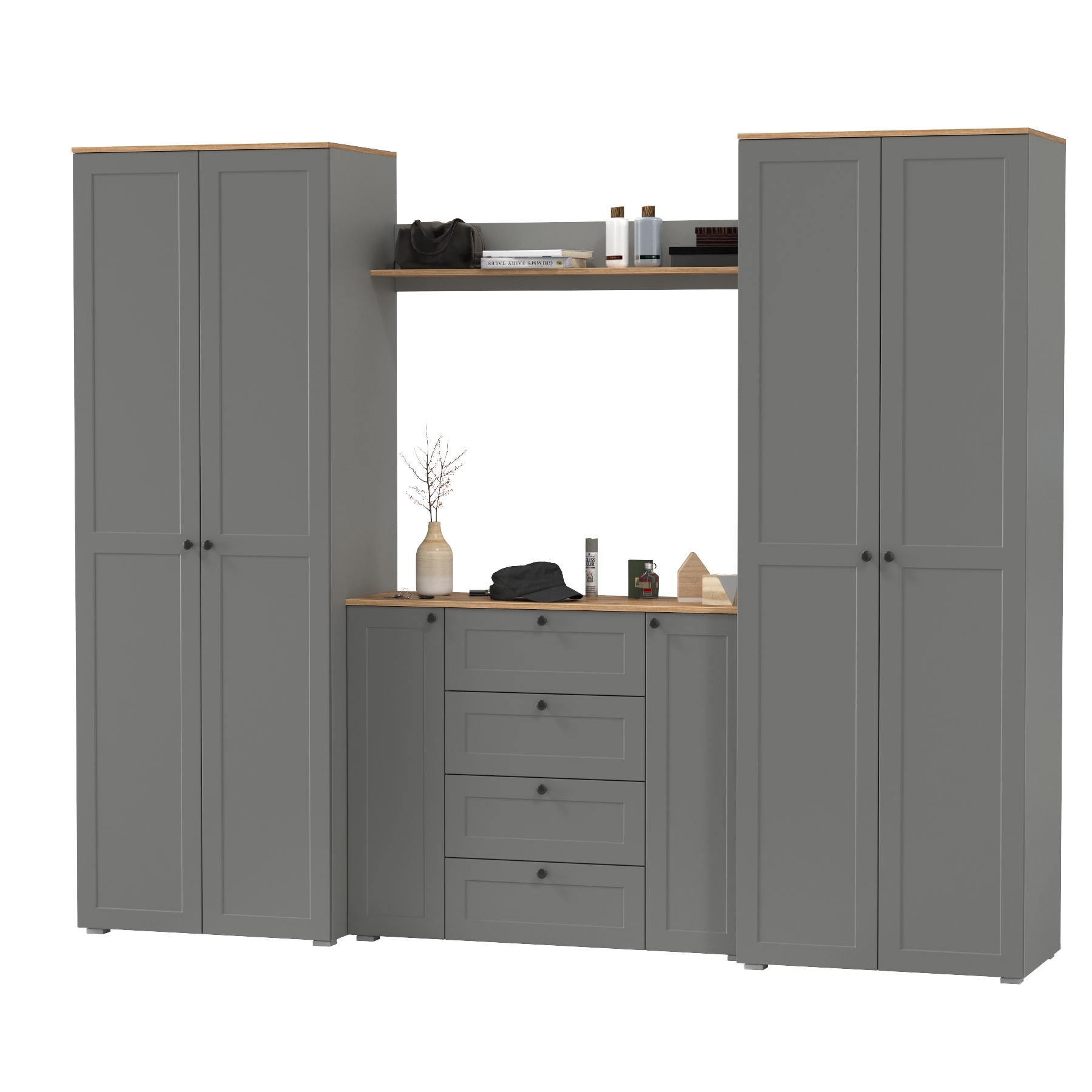 Прихожая Остин из двух платяных шкафов, комода и открытой полки – современное решение для прихожей, сочетающее стиль, практичность и функциональность.
