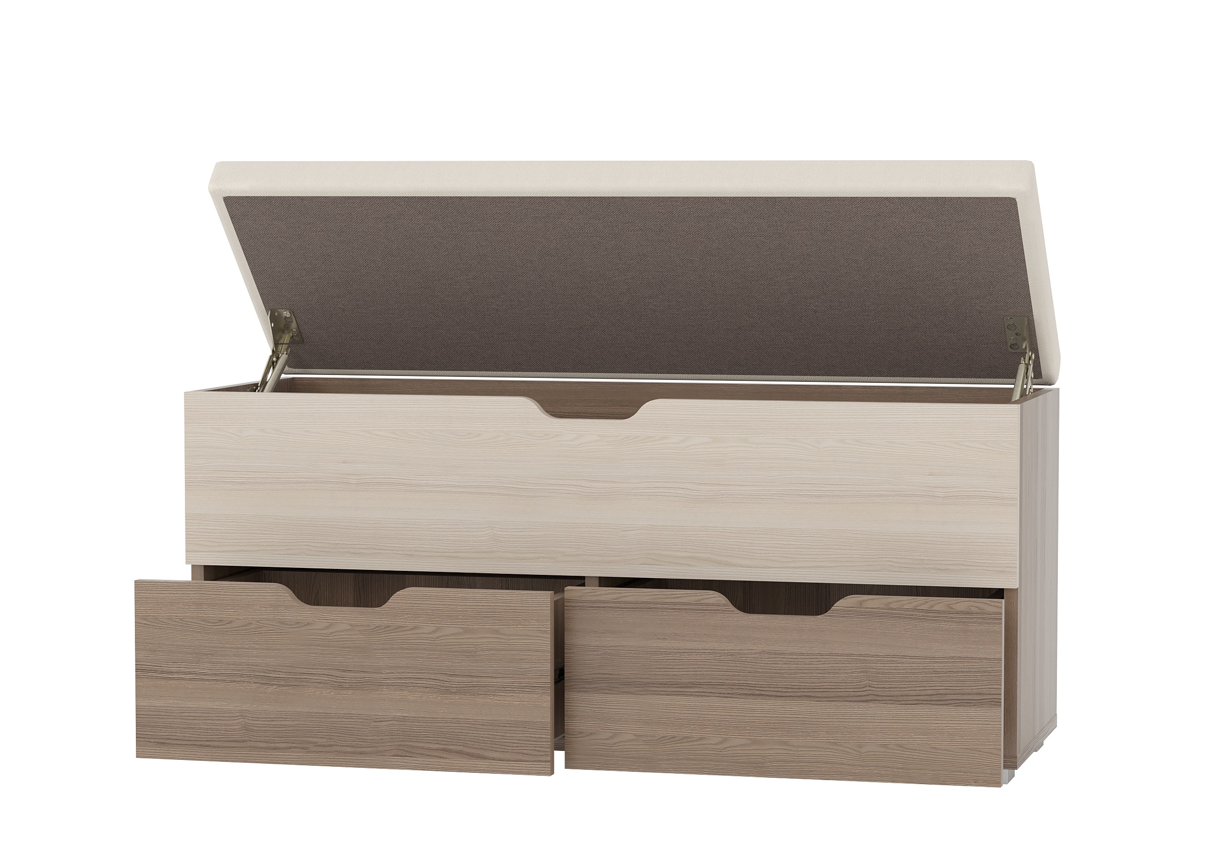 Диван для прихожей "Флинт" стилизован под сундук с мягкой верхней откидной крышкой и двумя вместительными ящиками, это позволяет хранить различные вещи и мелочи, что так необходимо для прихожей.
