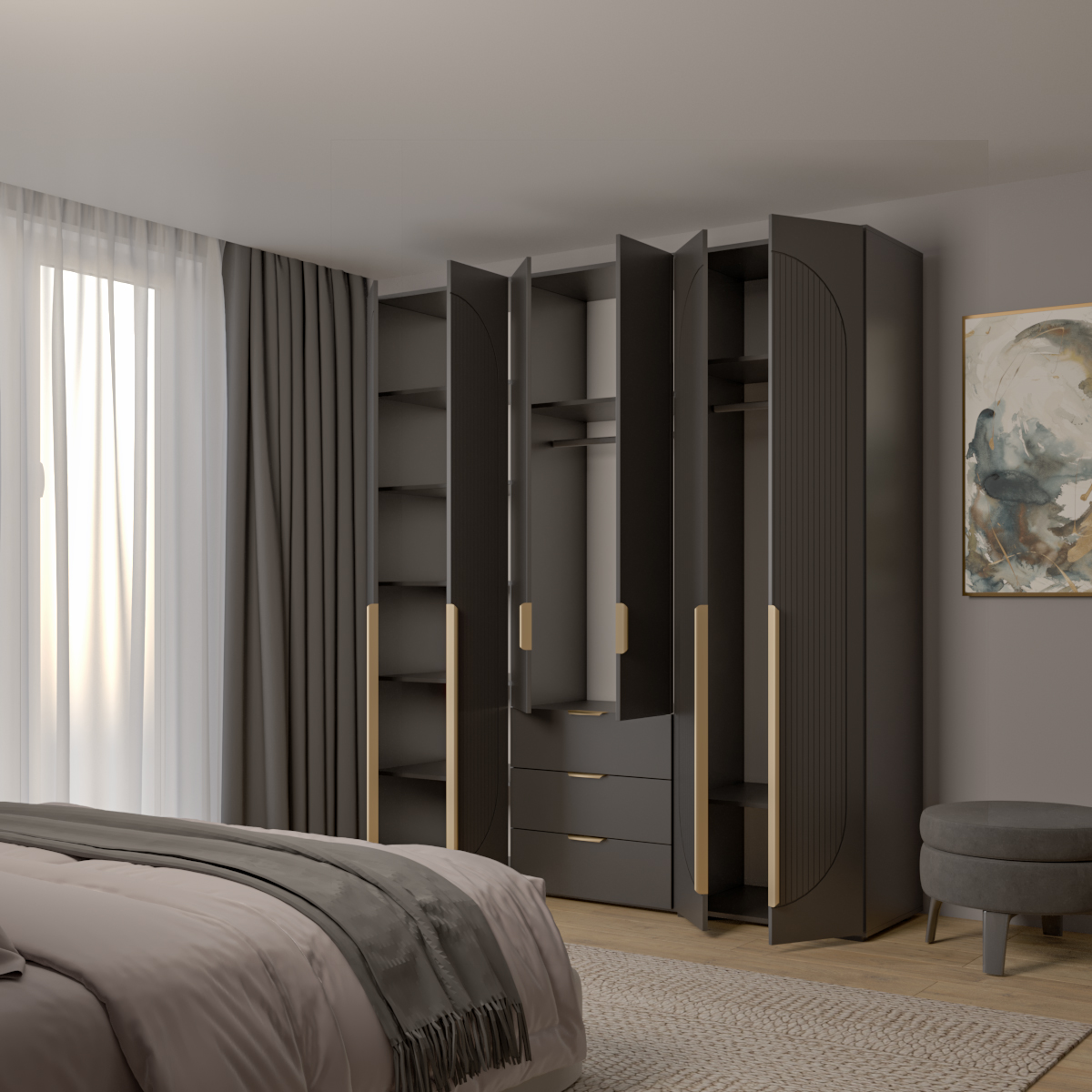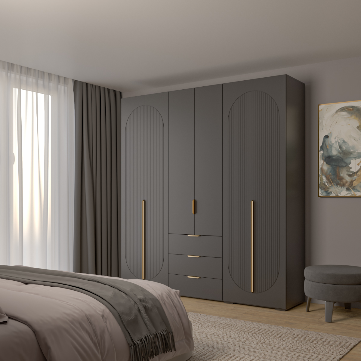 Этот современный гардероб сочетает в себе актуальный дизайн, надежную конструкцию и продуманное внутреннее наполнение – все, что нужно для комфортного хранения вещей в квартире или доме.