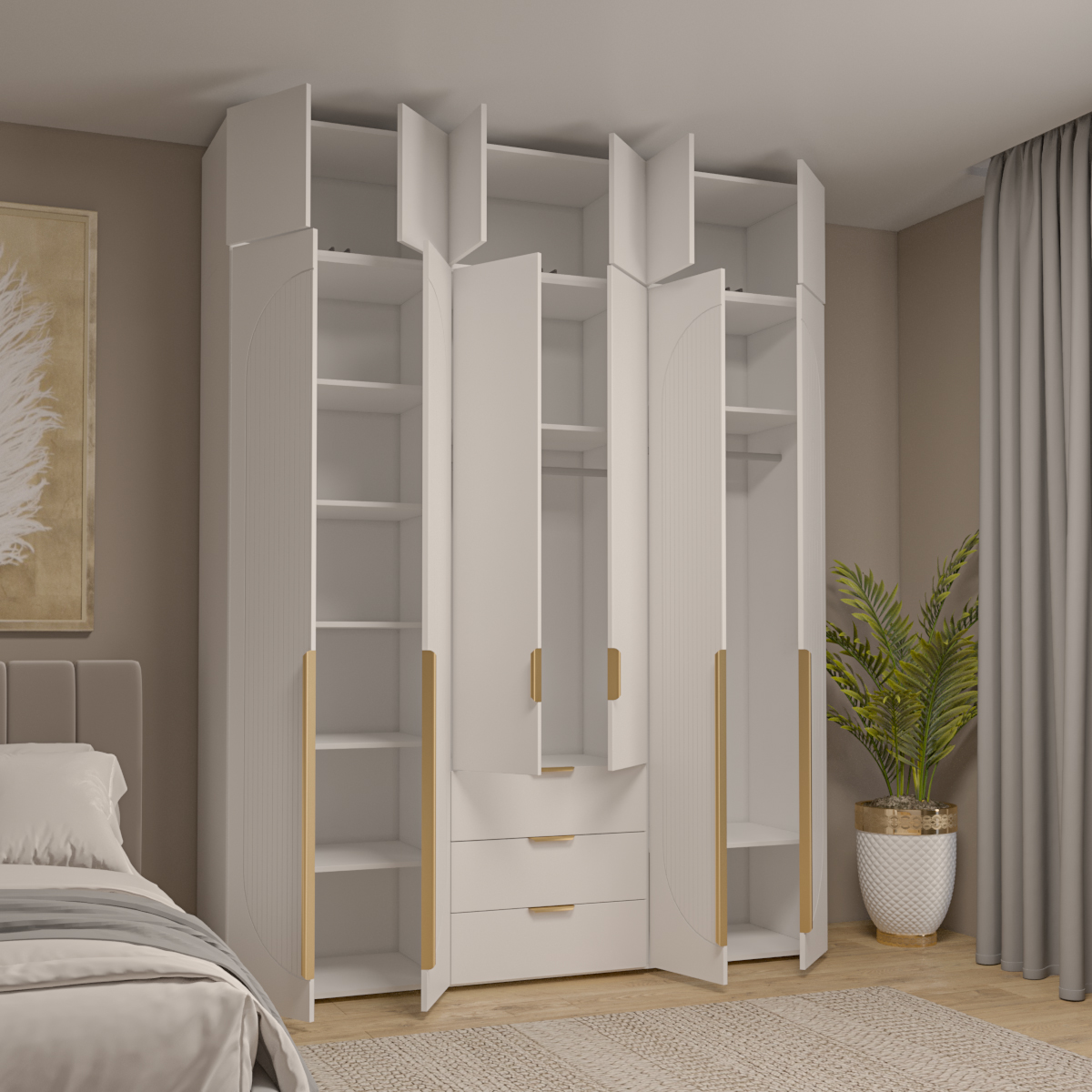 Этот вместительный, 6-ти створчатый распашной шкаф, предлагает оптимальное сочетание элегантного дизайна и практичной функциональности.