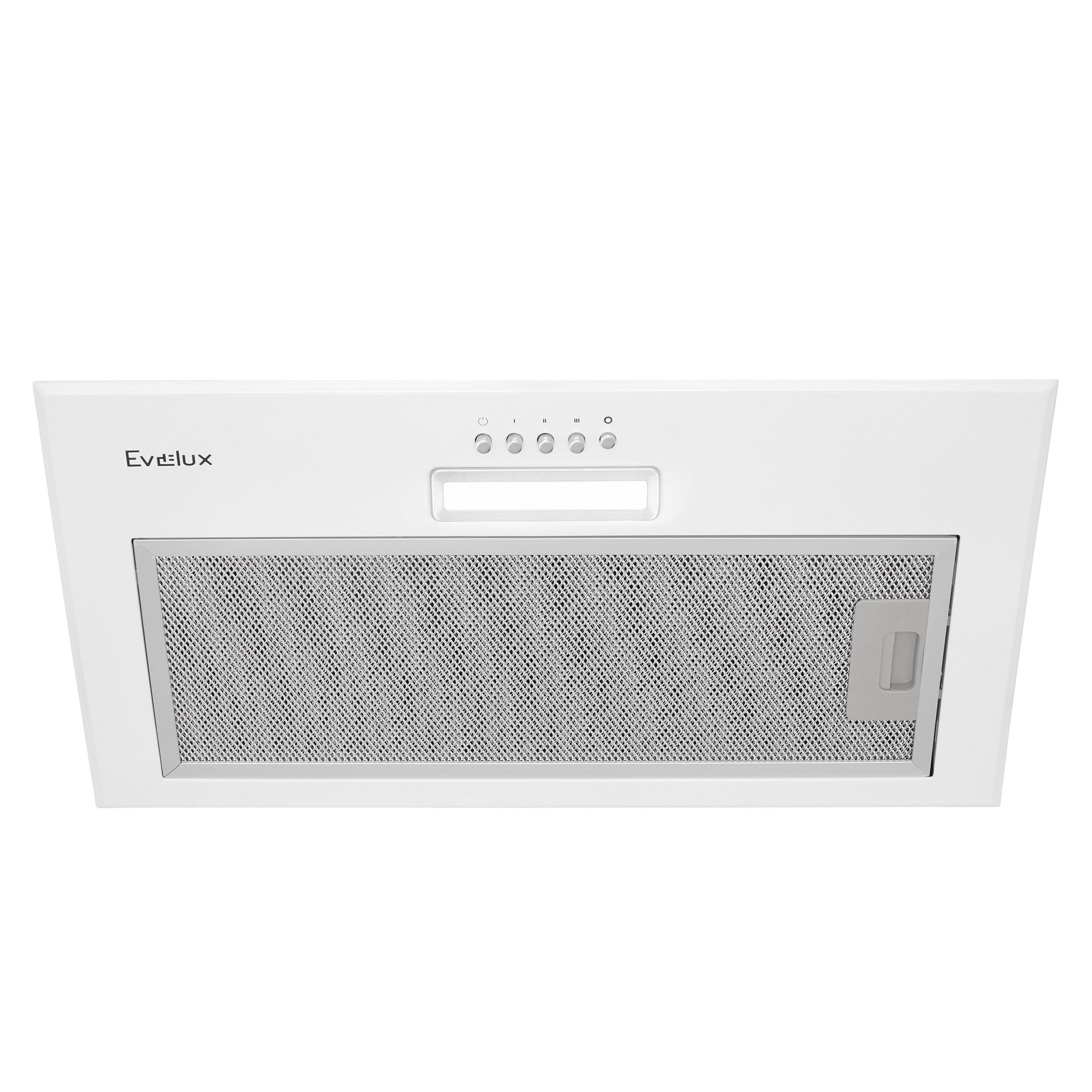 Встраиваемая вытяжка, полновстраиваемая в шкаф, 60 см, отвод/циркуляция, механический контроль, 3 скорости работы, производительность 750 м³/ч, LED освещение, металл, белый,525x291х276 мм.