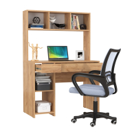 Стол компьютерный Комфорт 12.77F располагает большой столешницей и вместительной системой хранения. Система хранения стола разнообразна - это надстройка с открытыми нишами, открытая тумба со съёмной полкой и два выдвижных ящика стола. Защитная ниша надстройки вполне достаточна для установки монитора любого размера, а тумба подойдёт для установки системного блока. Стол собирается на любую сторону - при сборке Вы можете расположить тумбу как слева, так и справа. Стол изготовлен из ЛДСП, торцы деталей облицованы кромкой ПВХ 2 мм. и ПВХ 0,4 мм. Распашные двери мебели на четырёхшарнирных петлях без доводчиков. В выдвижных ящиках используются шариковые направляющие, которые обеспечивают надёжное прямолинейное перемещение.