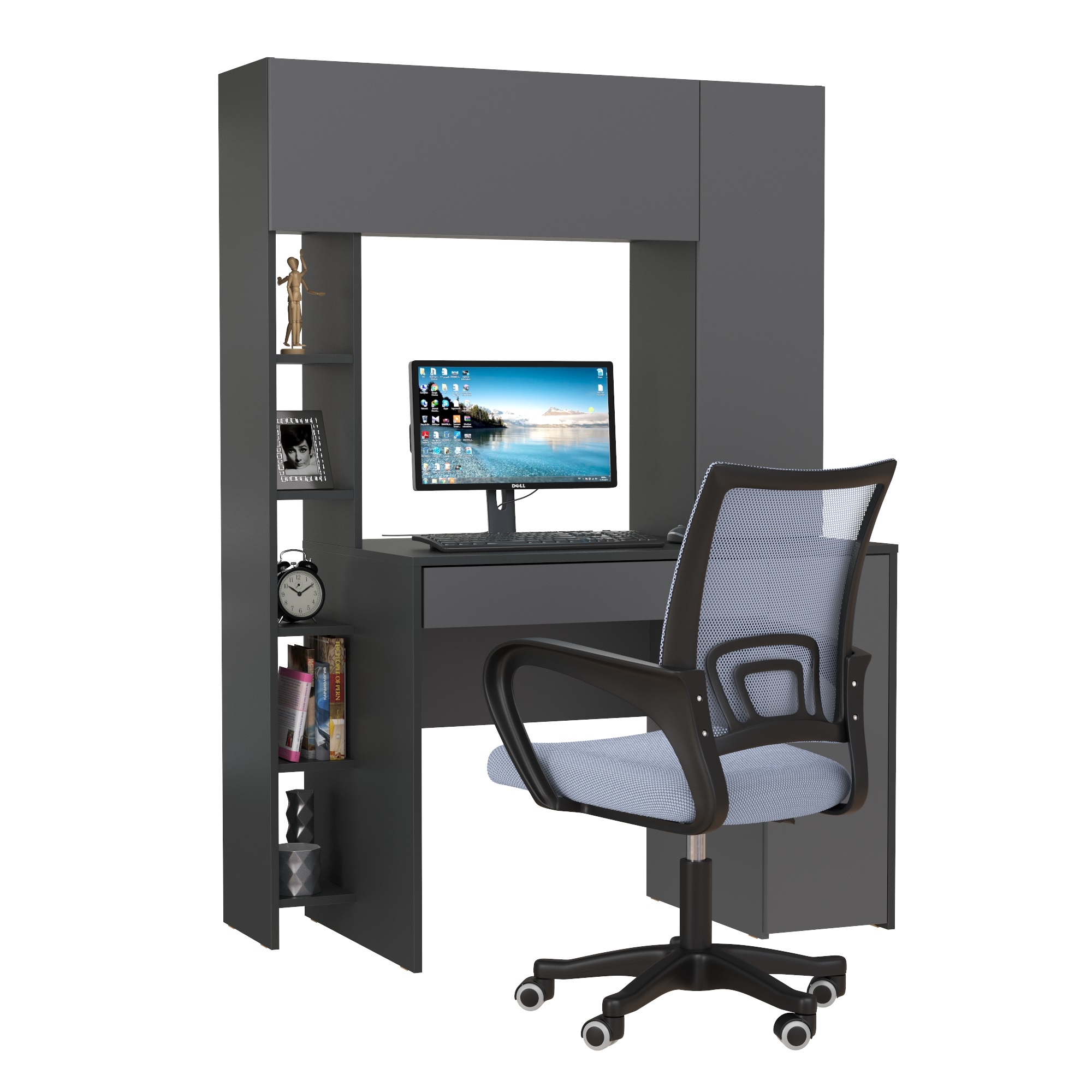 Отзывы о Столплит Компьютерный стол Комфорт 12.71 и офисное кресло 103 серого цвета Антрацит