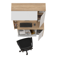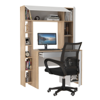 Удобный и устойчивый, с тумбой под системный блок и выдвижным ящиком для канцелярии, дополнен практичной надстройкой. Надстройка с вместительной нишей за откидным фасадом и распашным отделением с полкой, выделяет на столе удобную нишу для монитора. Закрытые отделения стола хранят деловые тайны, а пять полок стеллажа - документы, книги в удобной близости. Тумба расположена с правой стороны стола компьютерного, стеллаж - с левой. Дверки и ящик стола открываются за край фасада. Распашные двери мебели на четырёхшарнирных петлях без доводчиков, откидные фасады - на газовых лифтах, ручки - пластик. В выдвижных ящиках столов и тумб используются металлические направляющие.