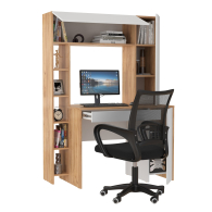 Удобный и устойчивый, с тумбой под системный блок и выдвижным ящиком для канцелярии, дополнен практичной надстройкой. Надстройка с вместительной нишей за откидным фасадом и распашным отделением с полкой, выделяет на столе удобную нишу для монитора. Закрытые отделения стола хранят деловые тайны, а пять полок стеллажа - документы, книги в удобной близости. Тумба расположена с правой стороны стола компьютерного, стеллаж - с левой. Дверки и ящик стола открываются за край фасада. Распашные двери мебели на четырёхшарнирных петлях без доводчиков, откидные фасады - на газовых лифтах, ручки - пластик. В выдвижных ящиках столов и тумб используются металлические направляющие.