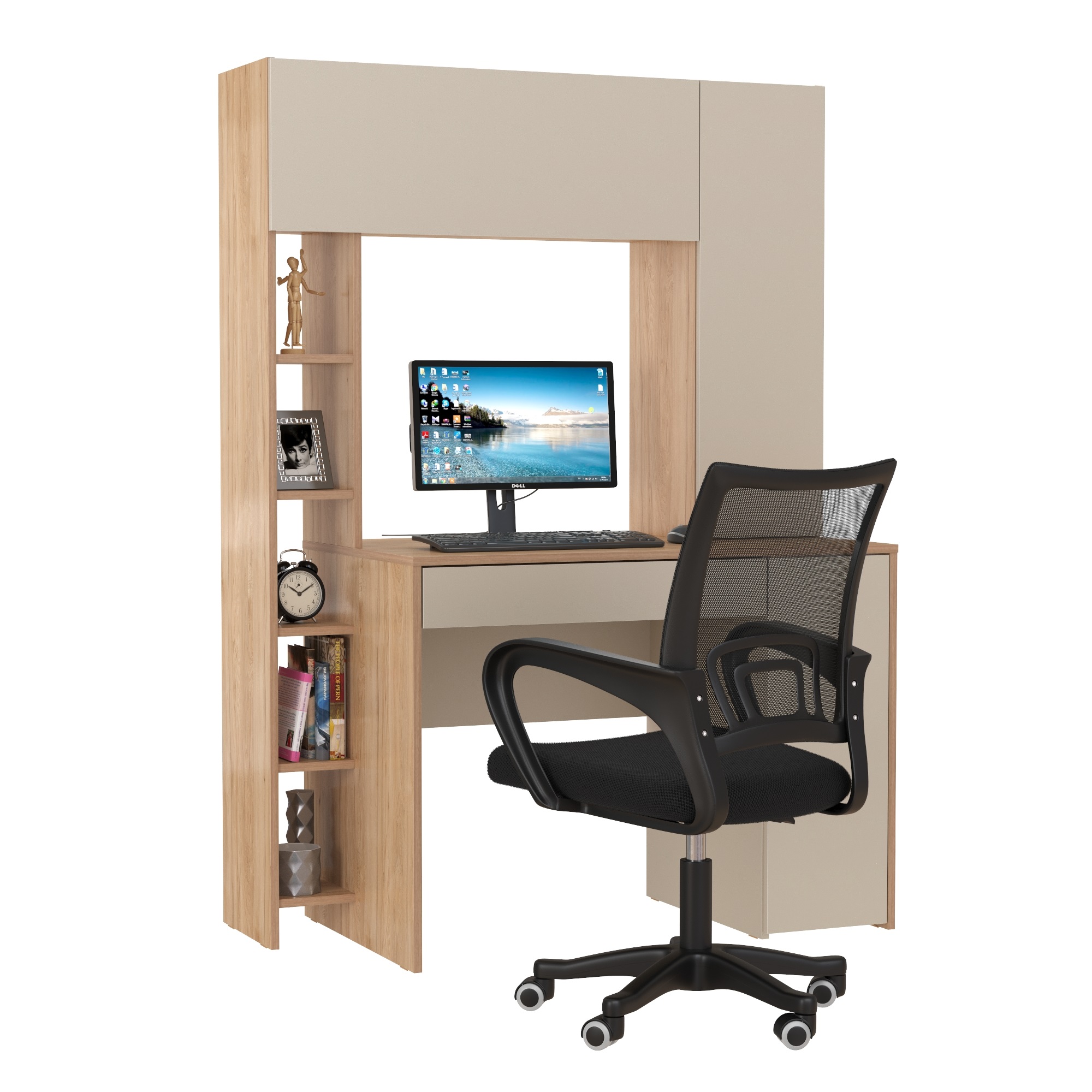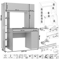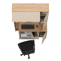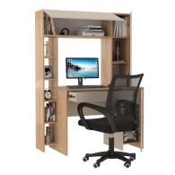 Удобный и устойчивый, с тумбой под системный блок и выдвижным ящиком для канцелярии, дополнен практичной надстройкой. Надстройка с вместительной нишей за откидным фасадом и распашным отделением с полкой, выделяет на столе удобную нишу для монитора. Закрытые отделения стола хранят деловые тайны, а пять полок стеллажа - документы, книги в удобной близости. Тумба расположена с правой стороны стола компьютерного, стеллаж - с левой. Дверки и ящик стола открываются за край фасада. Распашные двери мебели на четырёхшарнирных петлях без доводчиков, откидные фасады - на газовых лифтах, ручки - пластик. В выдвижных ящиках столов и тумб используются металлические направляющие.