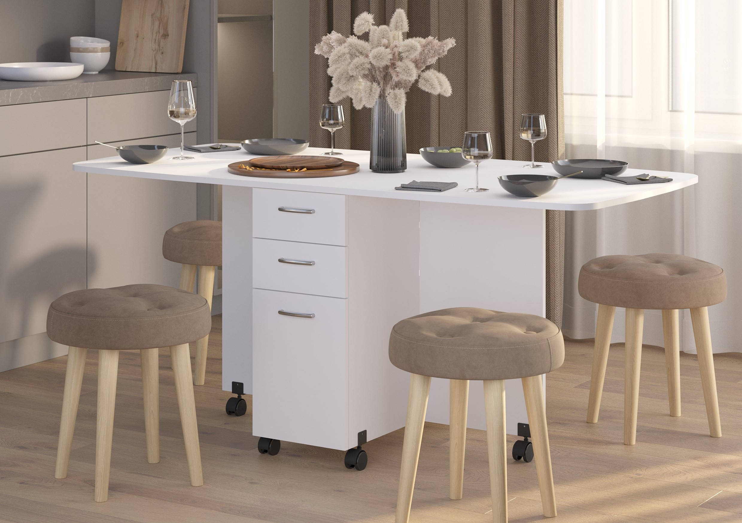 Раскладной стол книжка Атлант 1 с 4мя ящиками на шариковых напрвляющих станет эффектным и практичным элементом современного интерьера. Механизм трансформации поможет при необходимости легко организовать дополнительные посадочные места. Есть место под системный блок ПК.