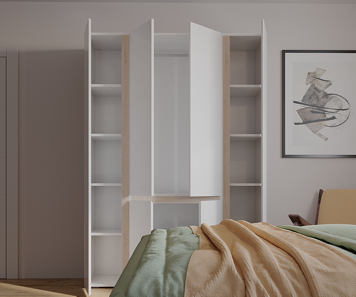 Распашной четырёхстворчатый шкаф «Сура2» — это практичная и вместительная мебель, которая отлично подойдёт для хранения одежды и белья.