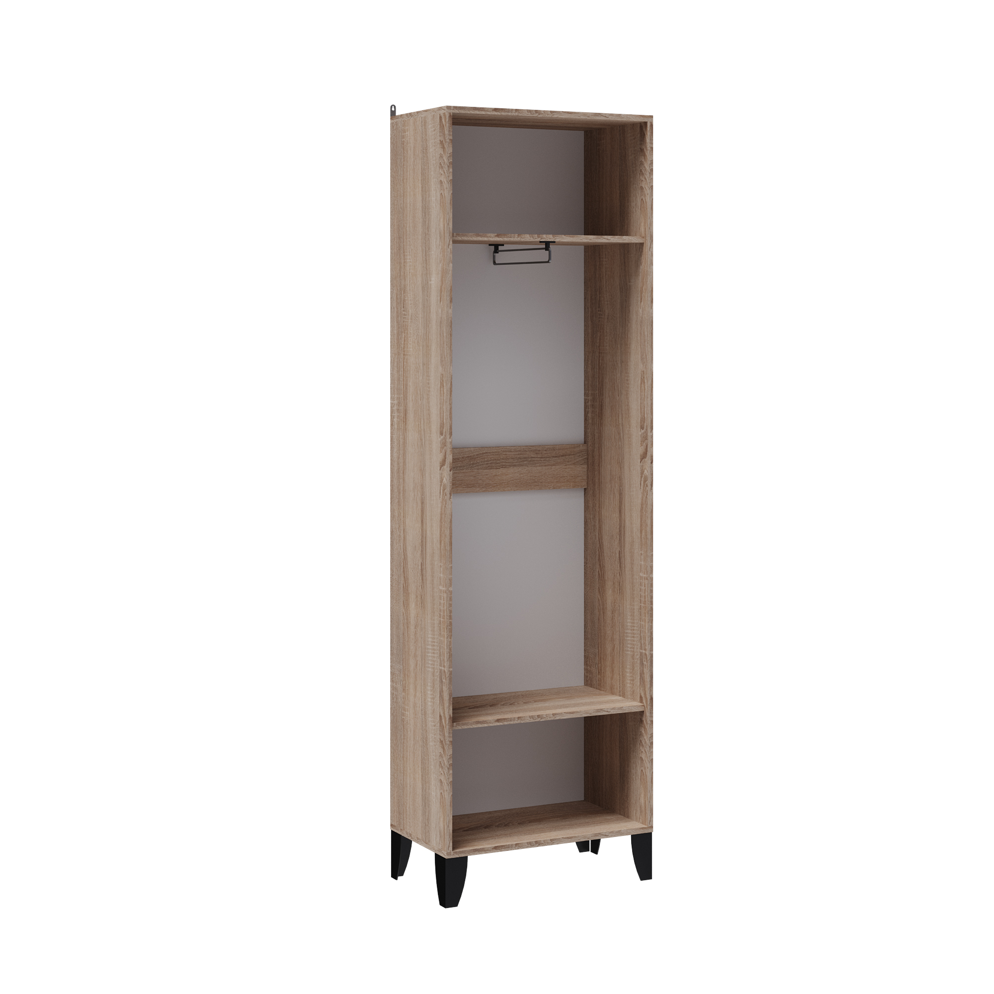 Благодаря продуманной конструкции, в шкафу «Витра» ваши вещи будут храниться на удобных полках, а одежда на плечиках — на встроенной евроштанге.
