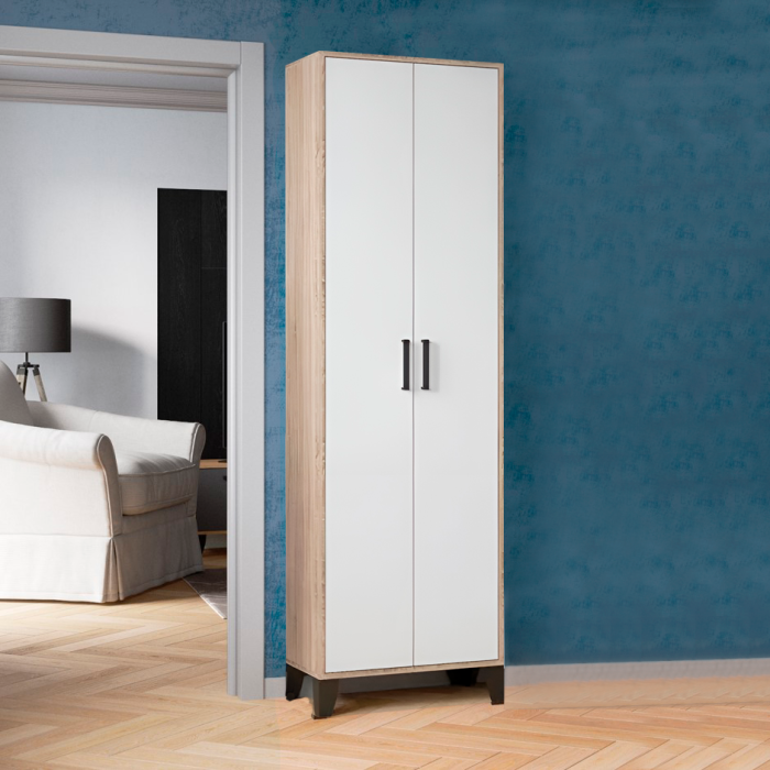 Компактный двустворчатый шкаф выполнен в натуральных оттенках, которые гармонично впишутся в любой интерьер.