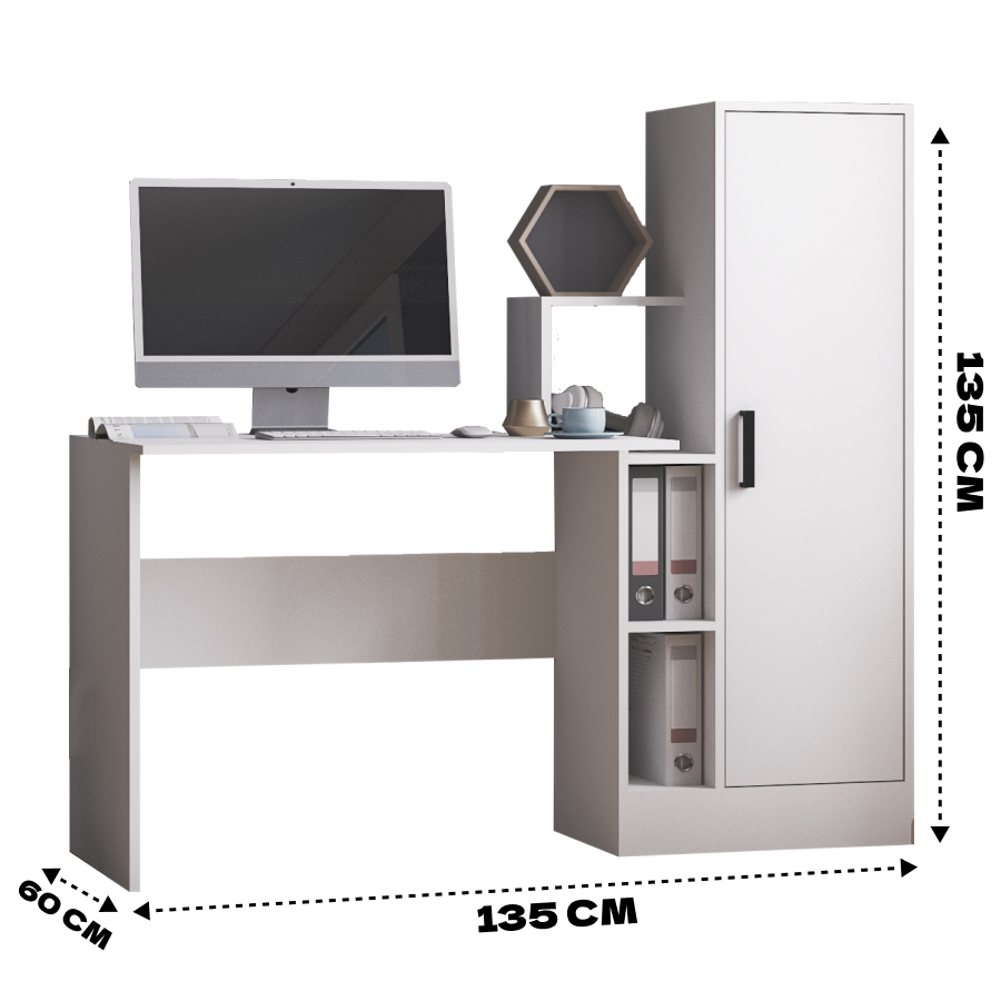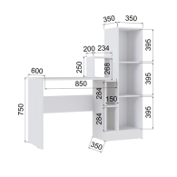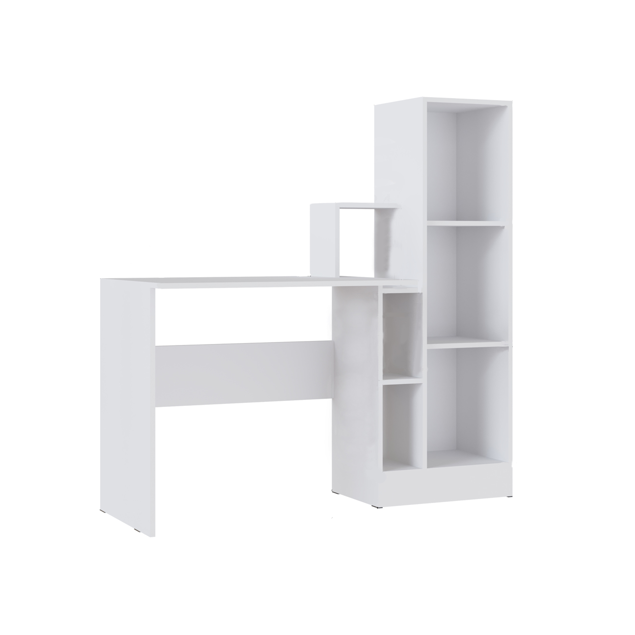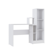 Компьютерный стол СКМ-2 в белом цвете с невысоким пеналом и полками, сочетает рабочую зону и вместительную зону хранения.