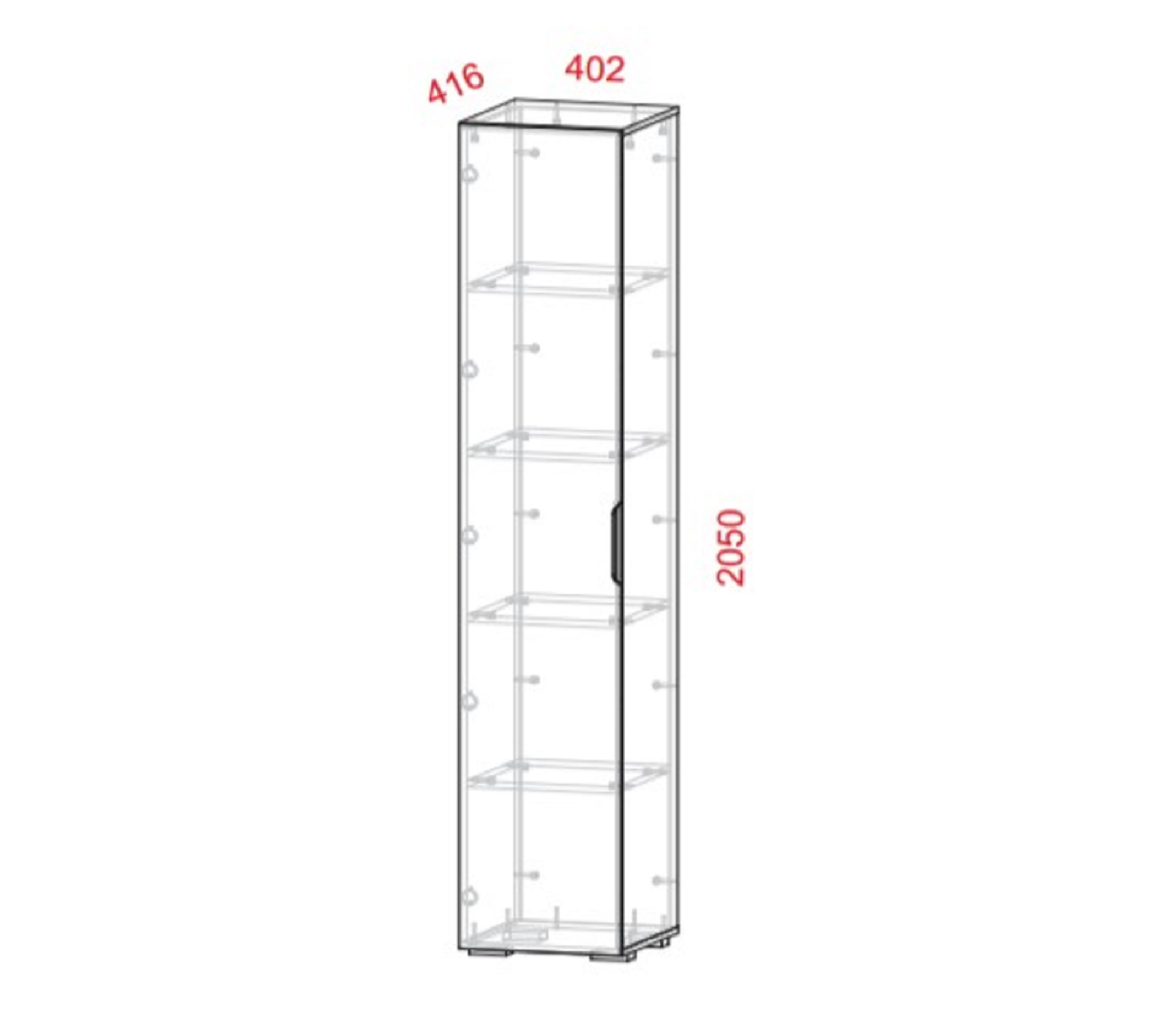 Шкаф однодверный Харди со стеклом и 5-ю полками внутри.