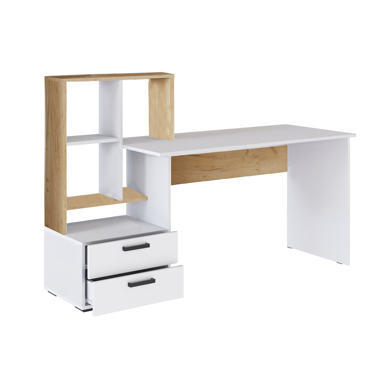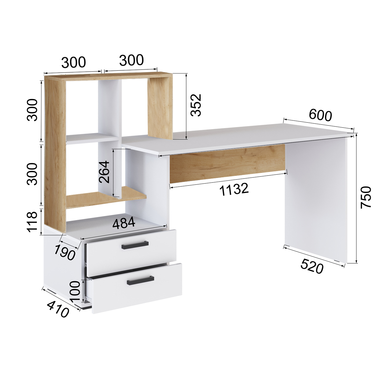 Компьютерный стол СКМ - 5 с тумбой 2 ящика и невысокой надставкой с полками.