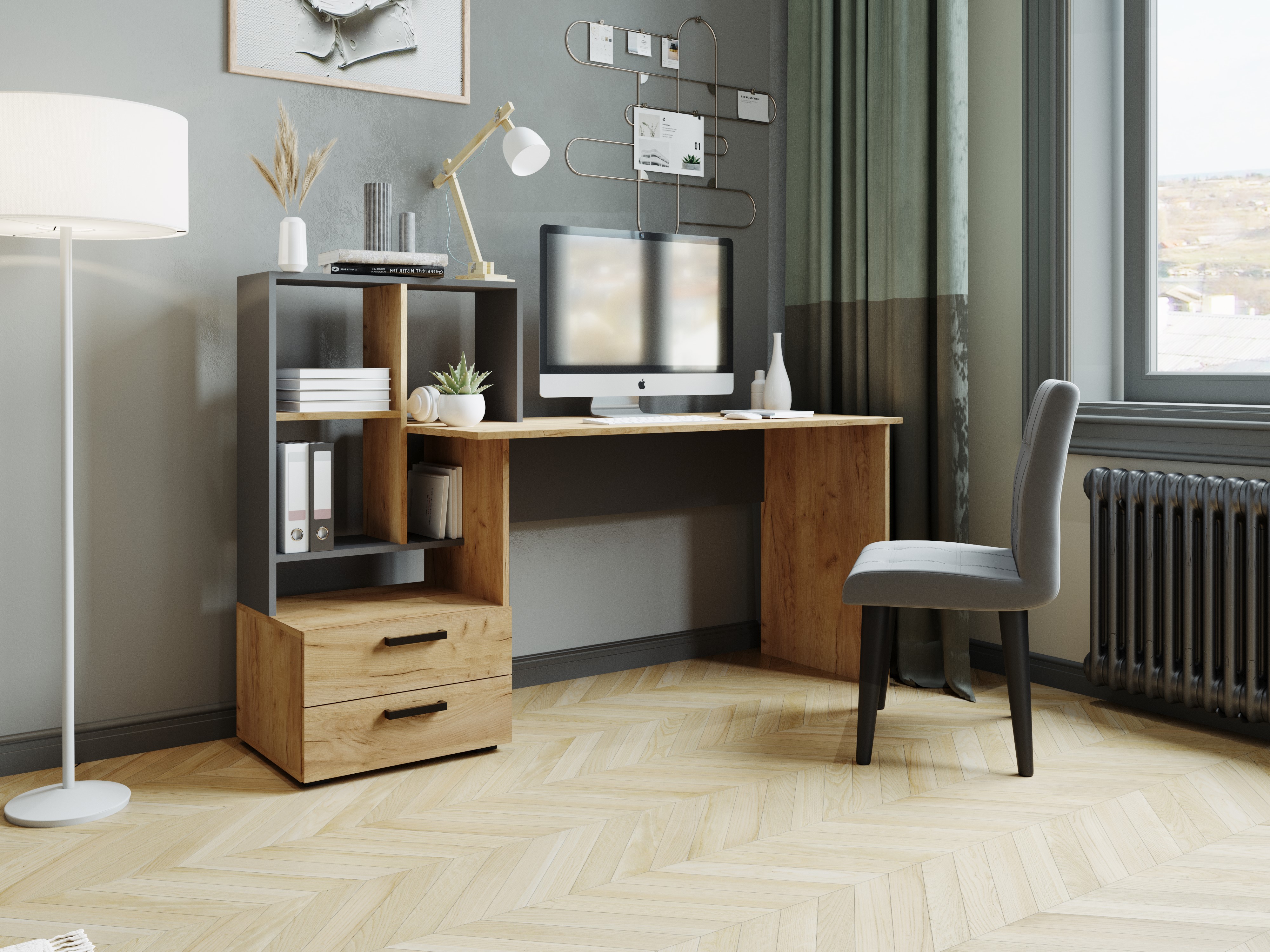 Данная модель стола сочетает рабочую зону и вместительную зону хранения.