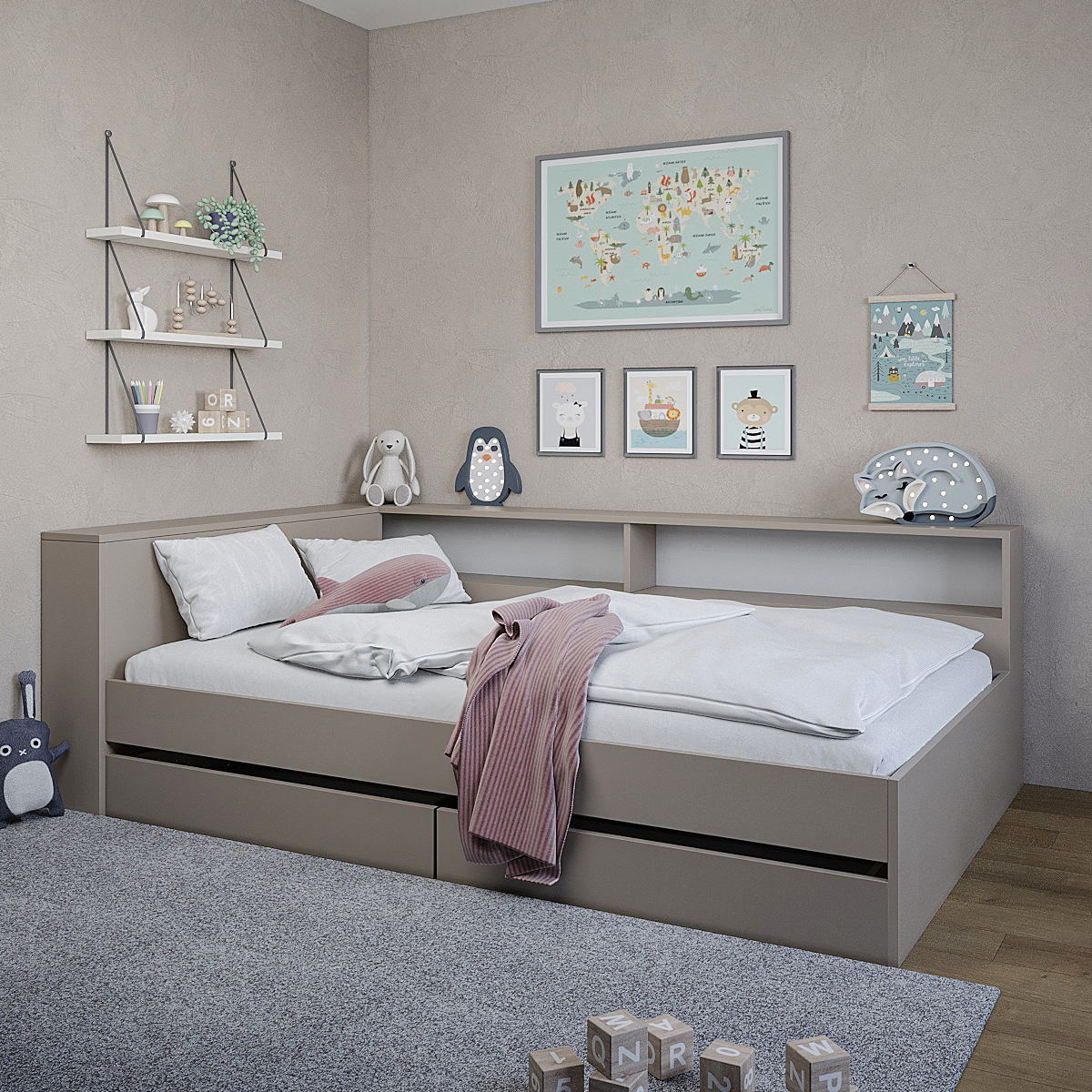 Ящики кровати сделаны на колесных опорах, что позволяет их перемещать по комнате, облегчая уборку помещения.