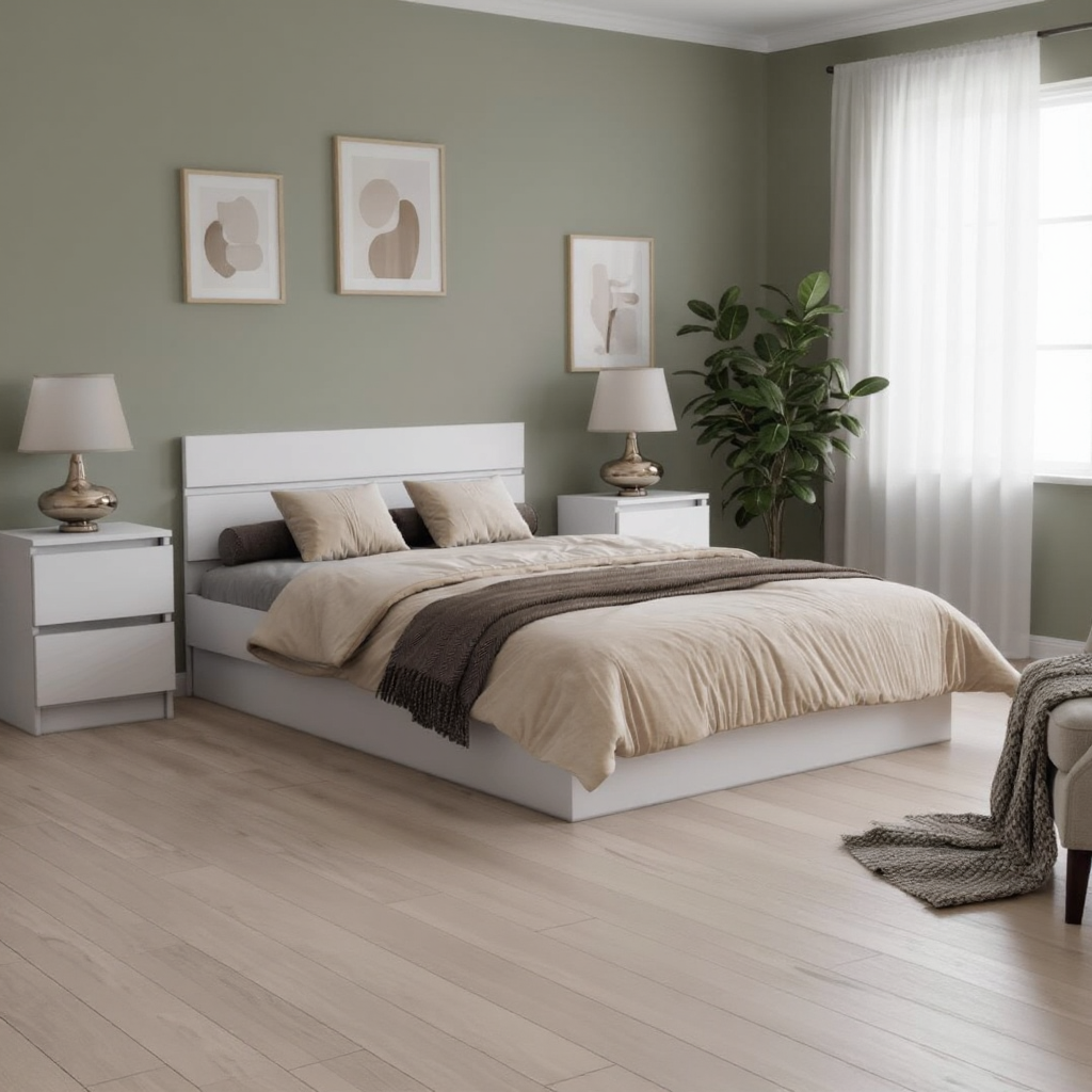 Корпус и изголовье изготовлены из ламинированной ДСП 16 мм., торцы деталей защищены пленкой ПВХ.