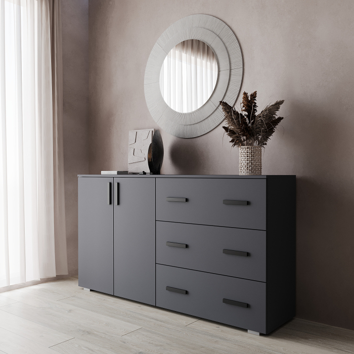 Комод Бостон 2 дверки+3 ящика отлично впишется в спальню, гостиную, прихожую - а также может использоваться в офисе.
