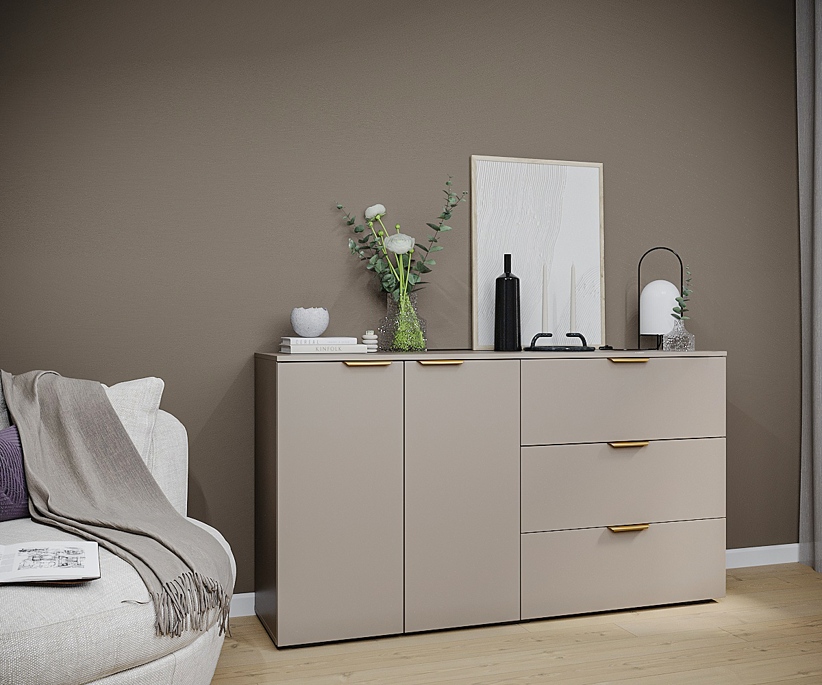Комод ГОЛД Бостон 2 дверки+3 ящика отлично впишется в спальню, гостиную, прихожую - а также может использоваться в офисе.