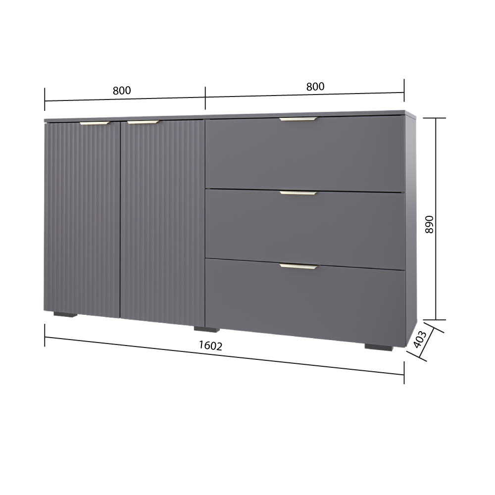Размеры комода: 1602х890х403.