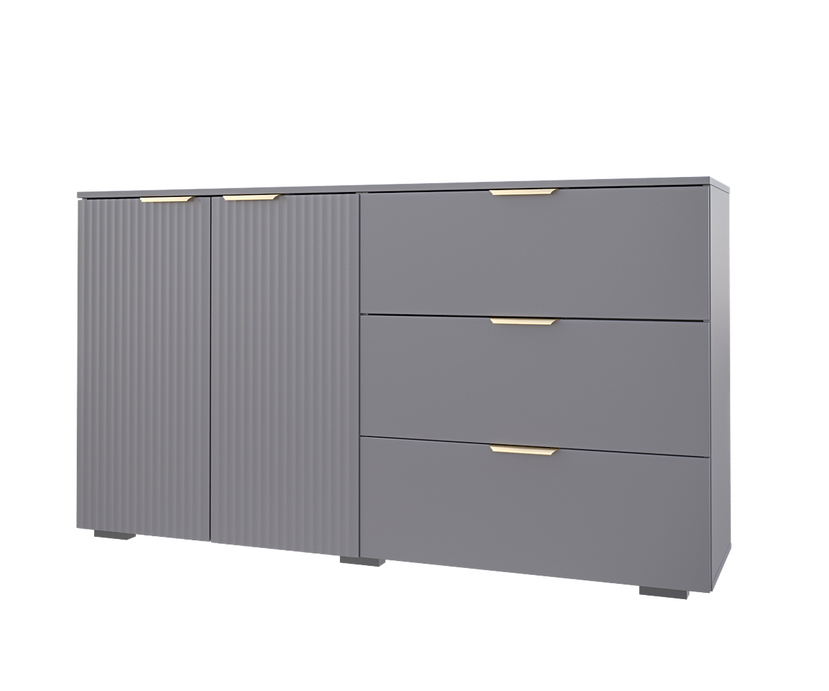 Комод Фиеста имеет 2 дверки+3 ящика, и отлично впишется в спальню, гостиную, прихожую - а также может использоваться в офисе.