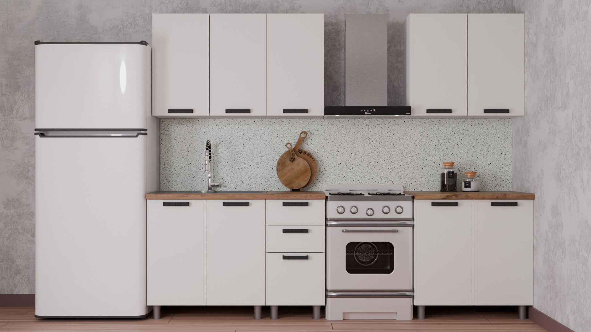 Тонкое фрезерованное обрамление по периметру фасада создаёт чёткую геометрию, подчёркивая формы и придавая кухне элегантность и легкость. Такой минималистичный подход – один из главных трендов 2025 года.