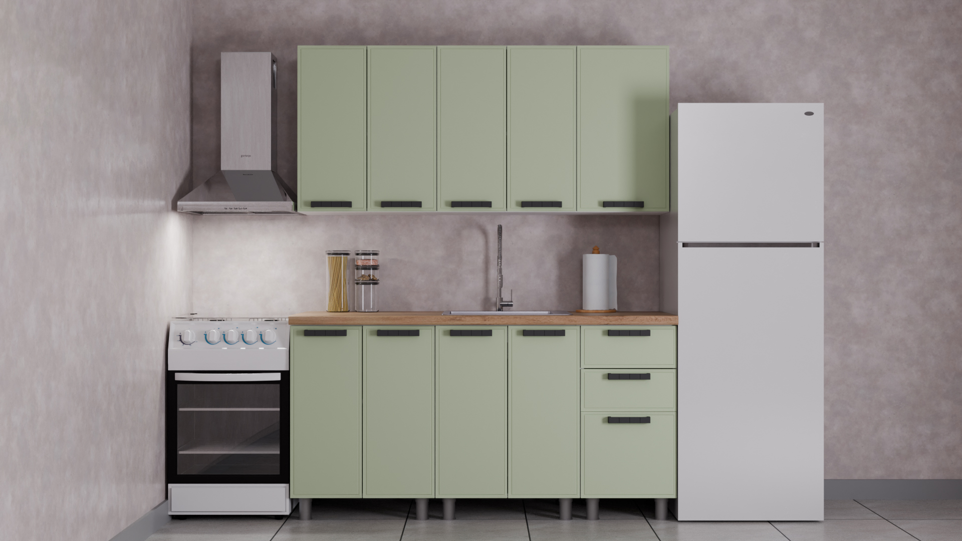 Тонкое фрезерованное обрамление по периметру фасада создаёт чёткую геометрию, подчёркивая формы и придавая кухне элегантность и легкость. Такой минималистичный подход – один из главных трендов 2025 года.