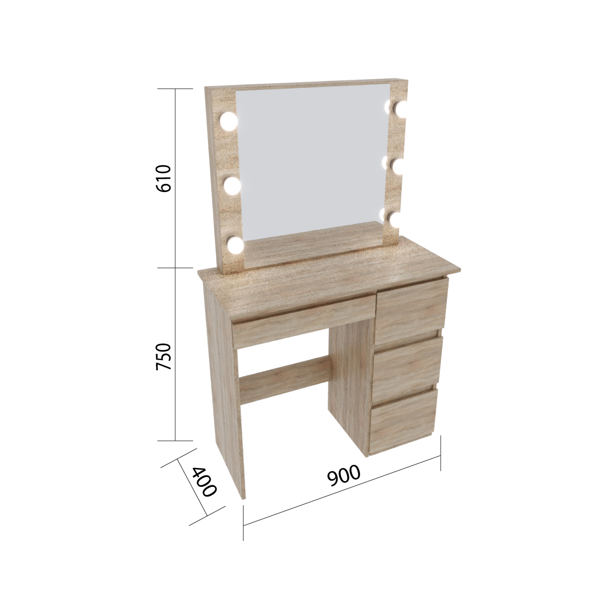 Размеры косметического стола 900*1360*40.