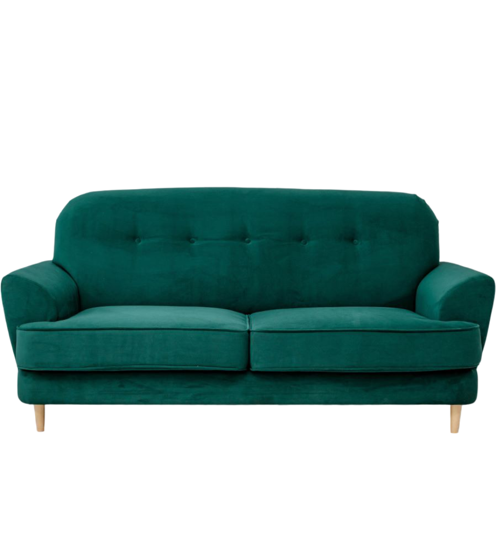 Обивка дивана выполнена из мягкого, приятного и «дышащего» велюра с отсутствующим пальчиковым эффектом. Ткань износостойкая с влагоотталкивающей пропиткой – пролитый кофе или сок не испортят вам настроение и внешний вид дивана.