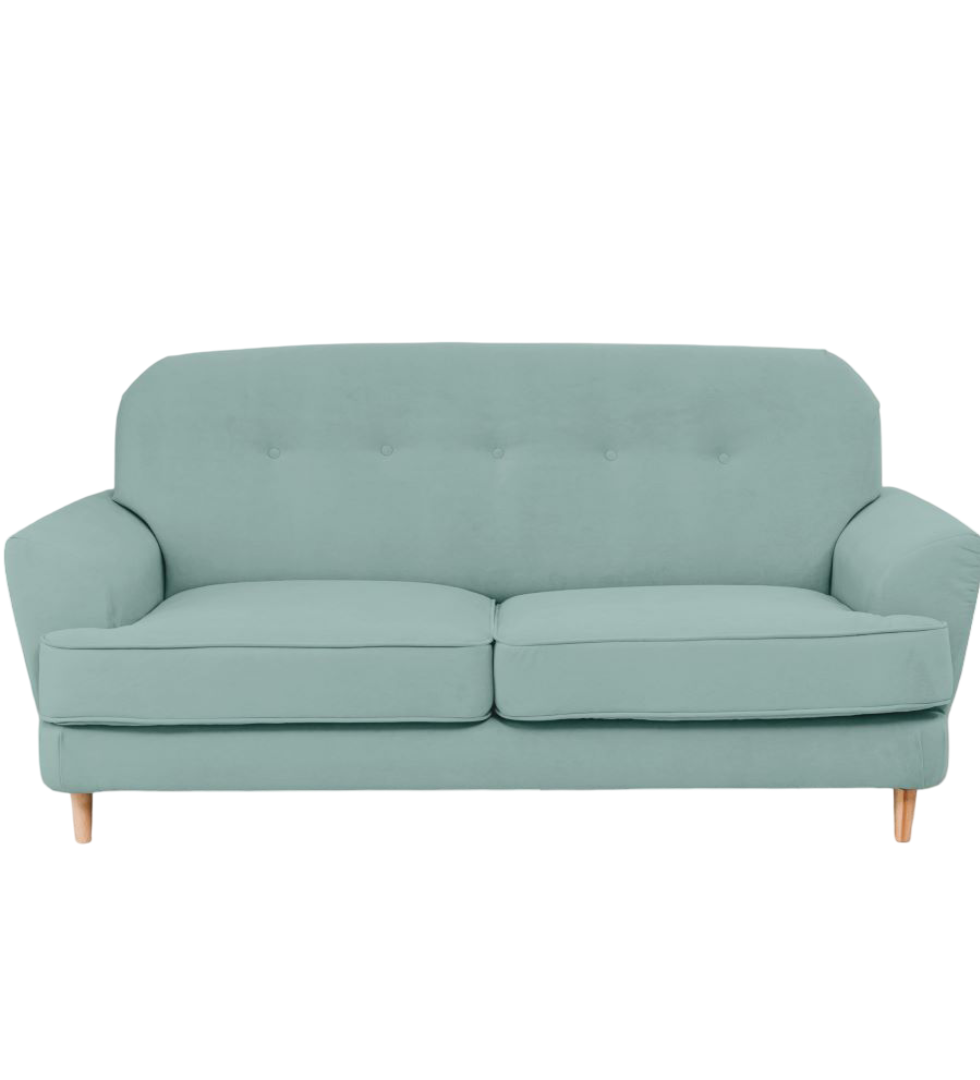 Обивка дивана выполнена из мягкого, приятного и «дышащего» велюра с отсутствующим пальчиковым эффектом. Ткань износостойкая с влагоотталкивающей пропиткой – пролитый кофе или сок не испортят вам настроение и внешний вид дивана.