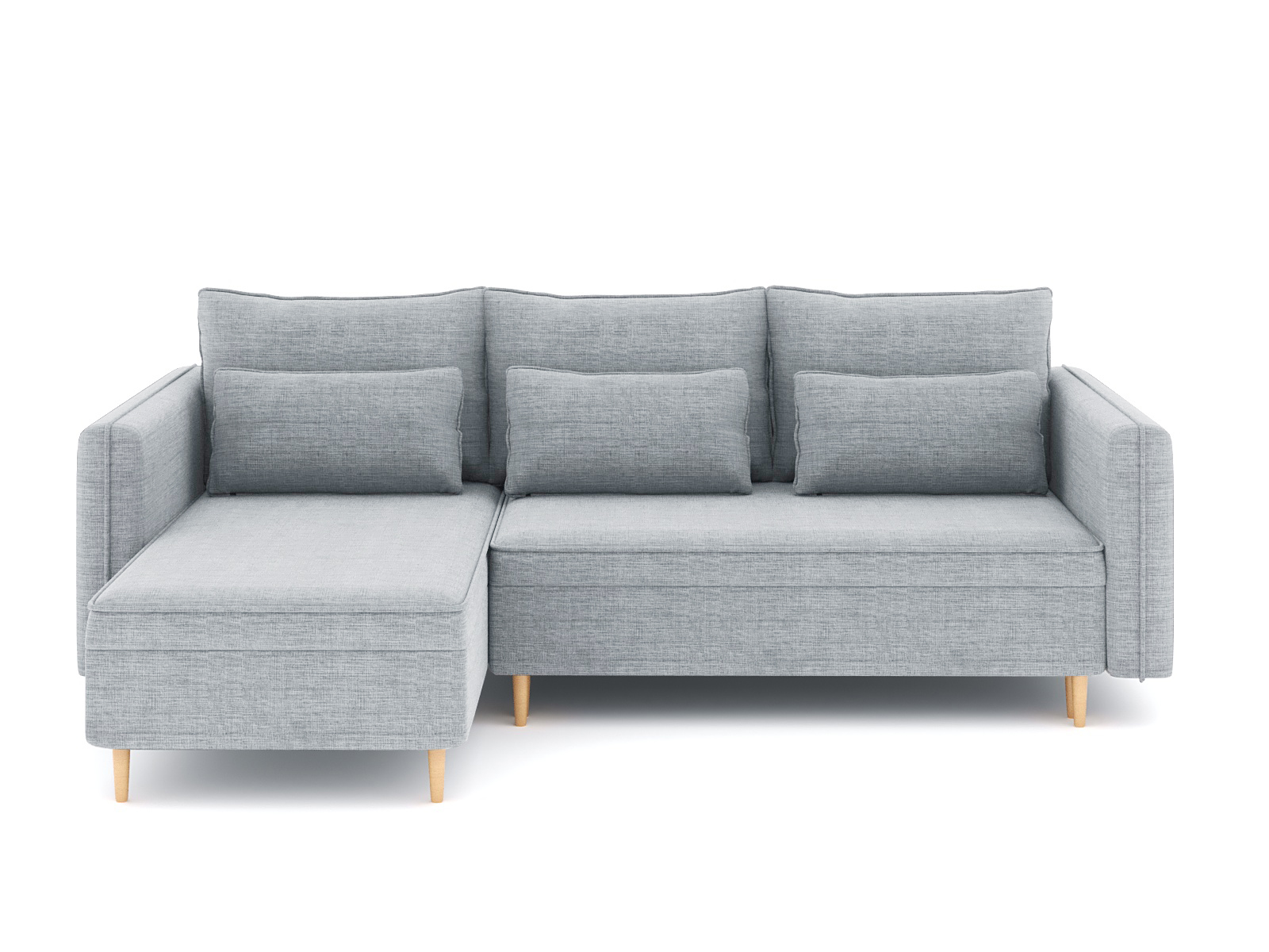 Механизм трансформации еврокнижка-пантограф. Каркас ДСП, ДВП, ЛДСП, фанера, брус хвойных пород. Спальное место 2000х1400мм. Наполнение высокоэластичный ППУ. Ящик для белья в основании и в оттоманке.Наполнение подушек-крошка ППУ, чехлы больших подушек съёмные на молнии.  Высота сиденья от пола 440мм. Глубина сиденья без подушек 780мм. Опора массив березы, высота опоры-150мм.Угол дивана универсальный. В комплекте 3 большие подушки и 3 декоративные.