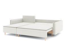 Механизм трансформации еврокнижка-пантограф. Каркас ДСП, ДВП, ЛДСП, фанера, брус хвойных пород. Спальное место 2000х1400мм. Наполнение высокоэластичный ППУ. Ящик для белья в основании и в оттоманке.Наполнение подушек-крошка ППУ, чехлы больших подушек съёмные на молнии. Высота сиденья от пола 440мм. Глубина сиденья без подушек 780мм. Опора массив березы, высота опоры-150мм.Угол дивана универсальный. В комплекте 3 большие подушки и 3 декоративные.