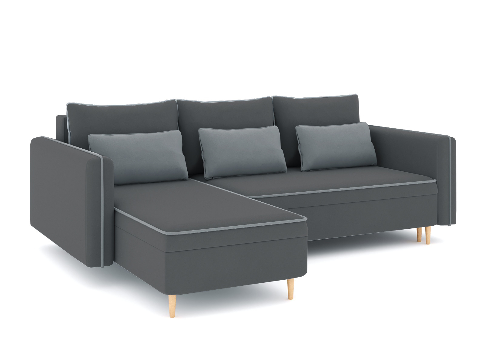 Диван-кровать угловой Рон еврокнижка-пантограф, велюр (Темно-серый)