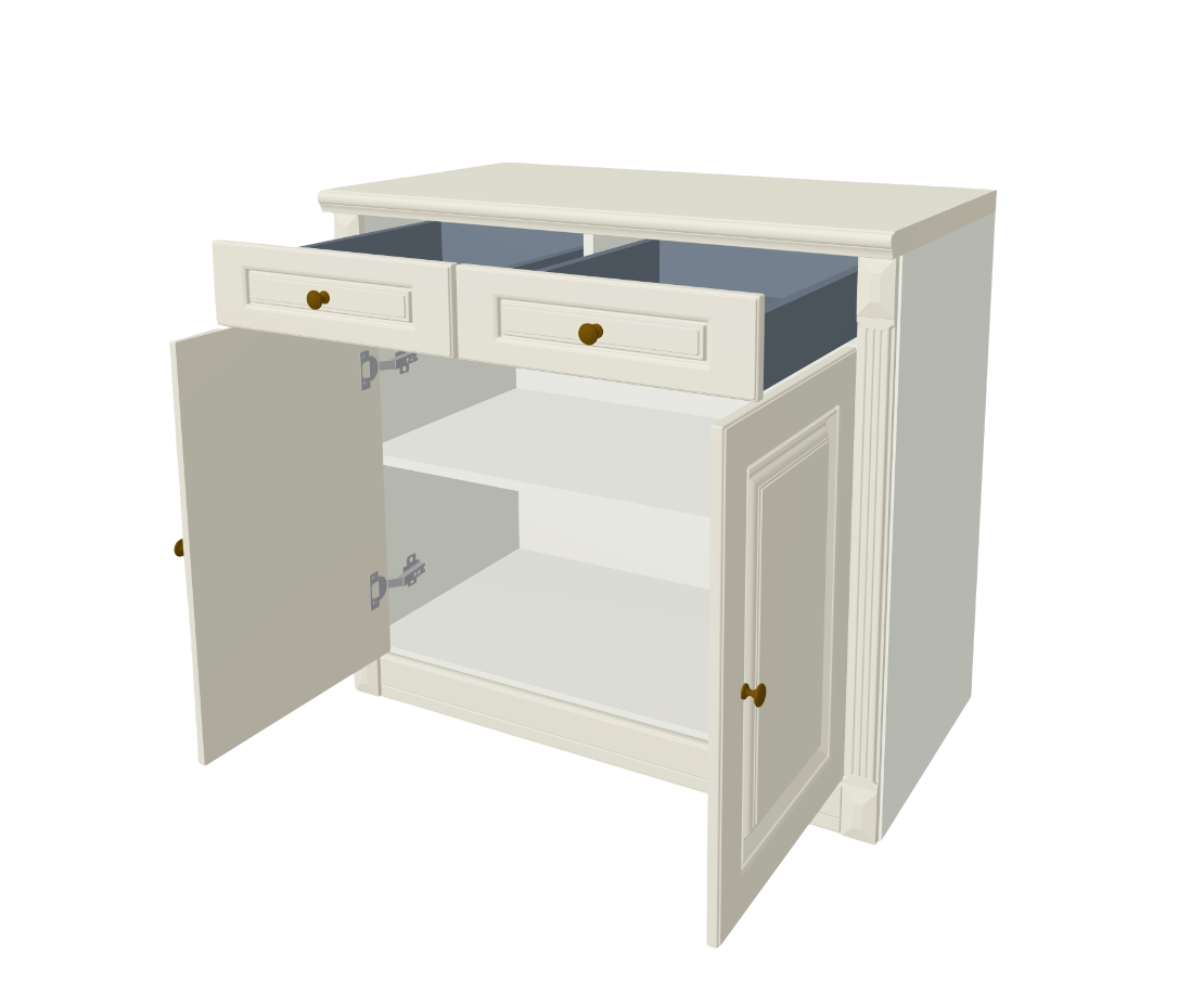 Мебель выполнена из МДФ с 3D-фрезеровкой, его отличают высокая прочность и долговечность, экологичность и безопасность. Две вариации шкафов – с глухим и стеклянным фасадом позволят как разместить книги, сувениры, так и скрыть то, что необходимо от посторонних глаз.