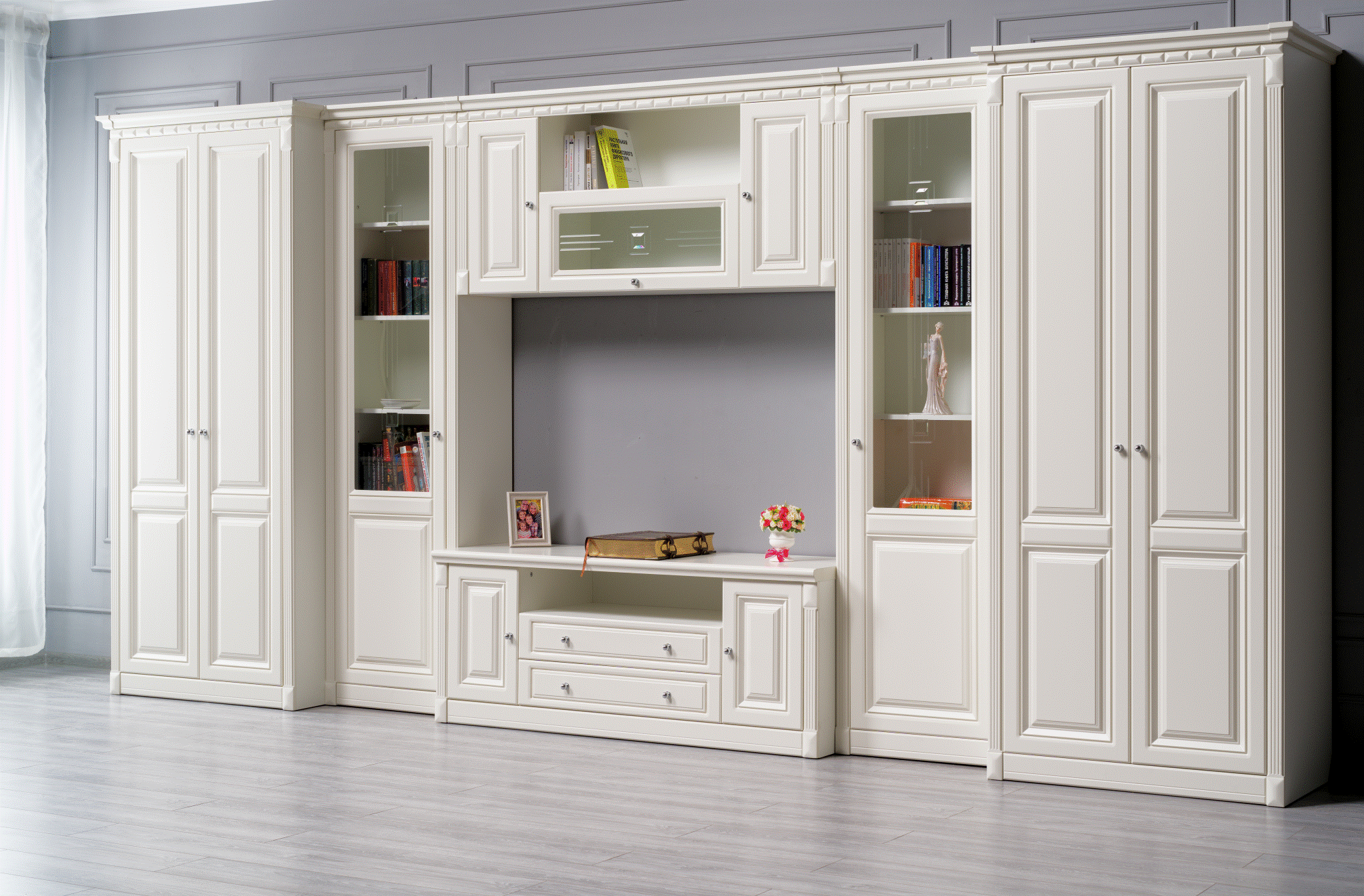 Благородная и респектабельная мебель Деметра преобразит ваш дом. Это готовое решение для вашей гостиной, кабинета или библиотеки.