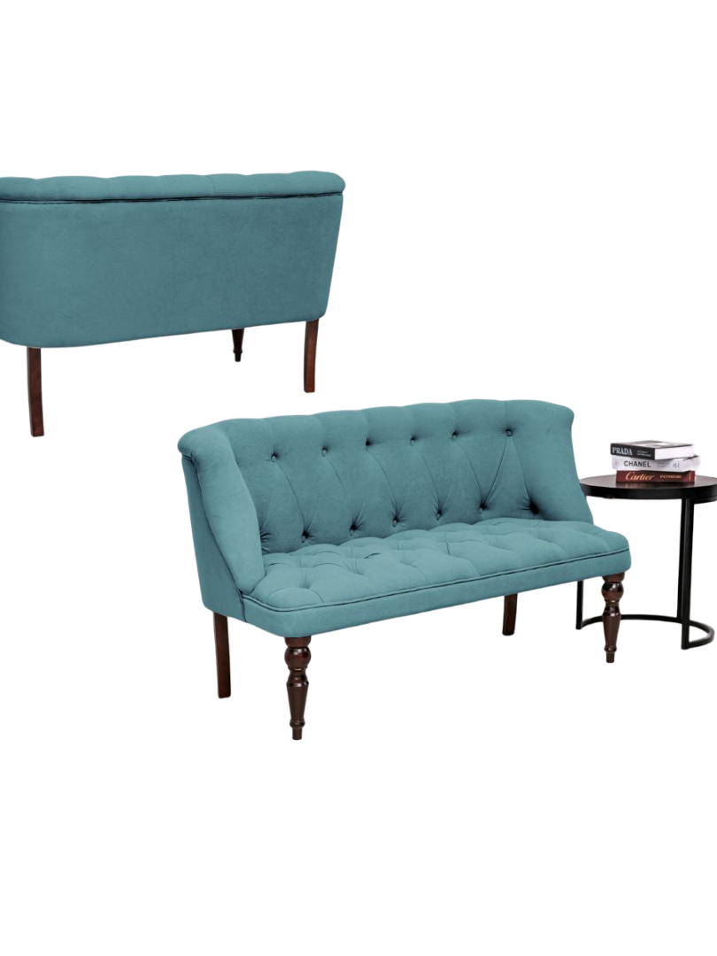 Современная классика с каретной стяжкой. Двухместный диван с изящным изголовьем и резными ножками из натурального дерева никого не оставит равнодушным., он безусловно добавит элегантности атмосфере вашего дома.