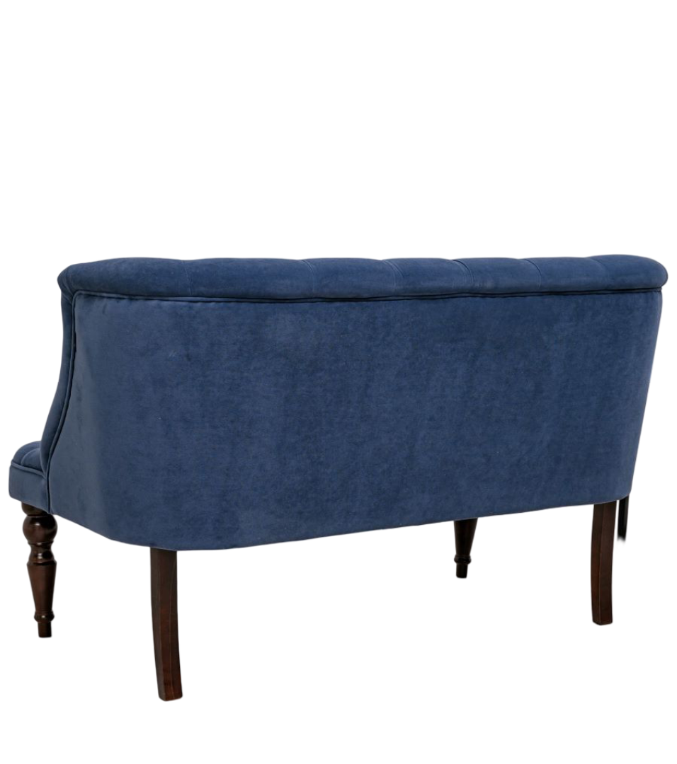 Современная классика с каретной стяжкой. Двухместный диван с изящным изголовьем и резными ножками из натурального дерева никого не оставит равнодушным., он безусловно добавит элегантности атмосфере вашего дома.